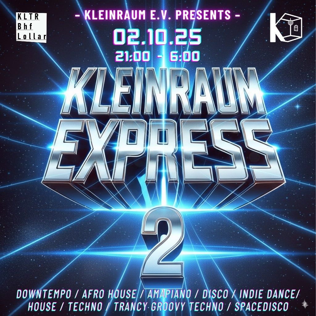 Am 02.10., um 21:00 Uhr, nimmt der Kleinraum Express im Kulturbahnhof Lollar zum zweiten Mal Fahrt auf – pünktlich zum Feiertags-Wochenende, rein in die Freiheit! 🥳